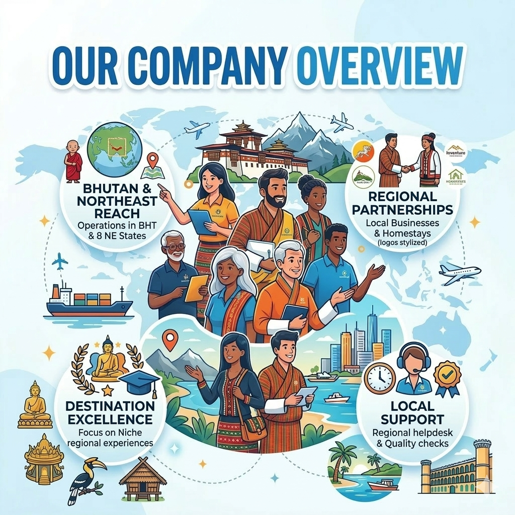 At Inventure DMC Private Limited, we understand that successful travel experiences depend on strong local expertise, reliable operations, and trusted partnerships. As a specialized Destination Management Company (DMC), we are committed to providing travel agents, tour operators, and corporate partners with seamless destination services across Bhutan, Sikkim & Darjeeling, North East India, and the Andaman Islands.